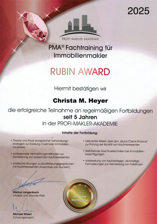 Ob Sie nun Wohnen oder Spekulieren – Kaufen oder Verkaufen – Mieten oder Vermieten – Christa M. Heyer ist die richtige Ansprechpartnerin, denn es gibt für jedes Problem mindestens eine Lösung.