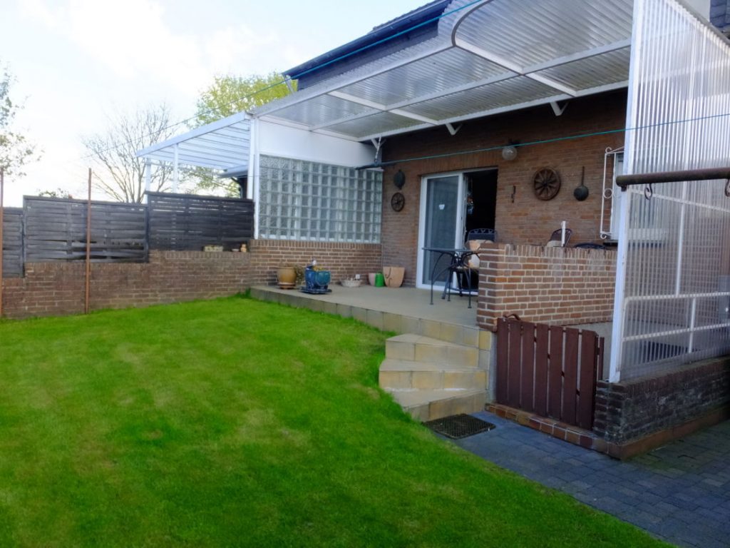 Die Wohnfläche beträgt ca. 88 m² und besteht aus 4 Zimmern incl. Wohnzimmer mit direktem Ausgang zur überdachten Terrasse, Küche, Diele, 2 Bäder, Vollkeller, Garage.
